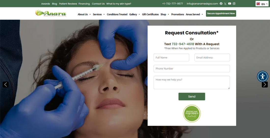 The center has earned consistent recognition for quality and service, including multiple Best of New Jersey awards, four consecutive Readers’ Choice wins for Best Medi-Spa, Home News Tribune’s 2019 Best of the Best, repeated Spectrum Awards, ThreeBestRated’s Top 3 Med Spa listing, and several 2025 honors. As of March 2026, City Beat News reported that Anara had achieved 14 consecutive Spectrum Awards.