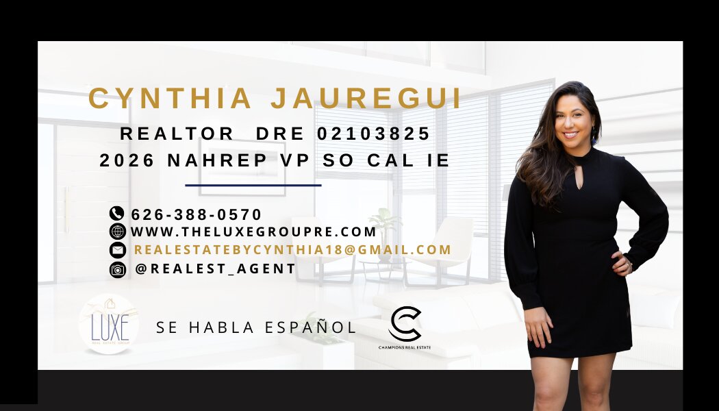 Cynthia Jauregui is a highly rated Realtor with Champions Real Estate, based at 121 S Mountain Ave in Upland and proudly serving the San Gabriel Valley, Inland Empire, and all of Southern California. Known for strong negotiation skills and honest guidance, she specializes in La Puente, West Covina, Baldwin Park, and surrounding SGV markets while helping buyers and sellers throughout SoCal. As a NAHREP leader, Cynthia is committed to expanding Hispanic homeownership and delivering a high-level, results-driven real estate experience.