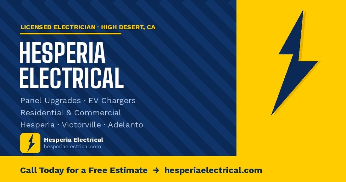 Hesperia Electrical is a licensed and insured electrical contractor serving the High Desert communities of Hesperia, Victorville, and Adelanto, California. Holding California C-10 License #1120740, our team specializes in residential and commercial electrical services including panel upgrades and replacements, whole-home rewiring, EV charger installation, outlet and circuit work, and emergency electrical repairs. We serve homeowners and businesses across San Bernardino County with honest pricing, free estimates, and prompt response times. Whether you need a 200-amp panel upgrade to handle modern electrical loads, a Level 2 EV charger installed at your home or business, or a complete rewiring of an older High Desert property, Hesperia Electrical delivers reliable work done right the first time. Call (760) 905-9997 for a free estimate.