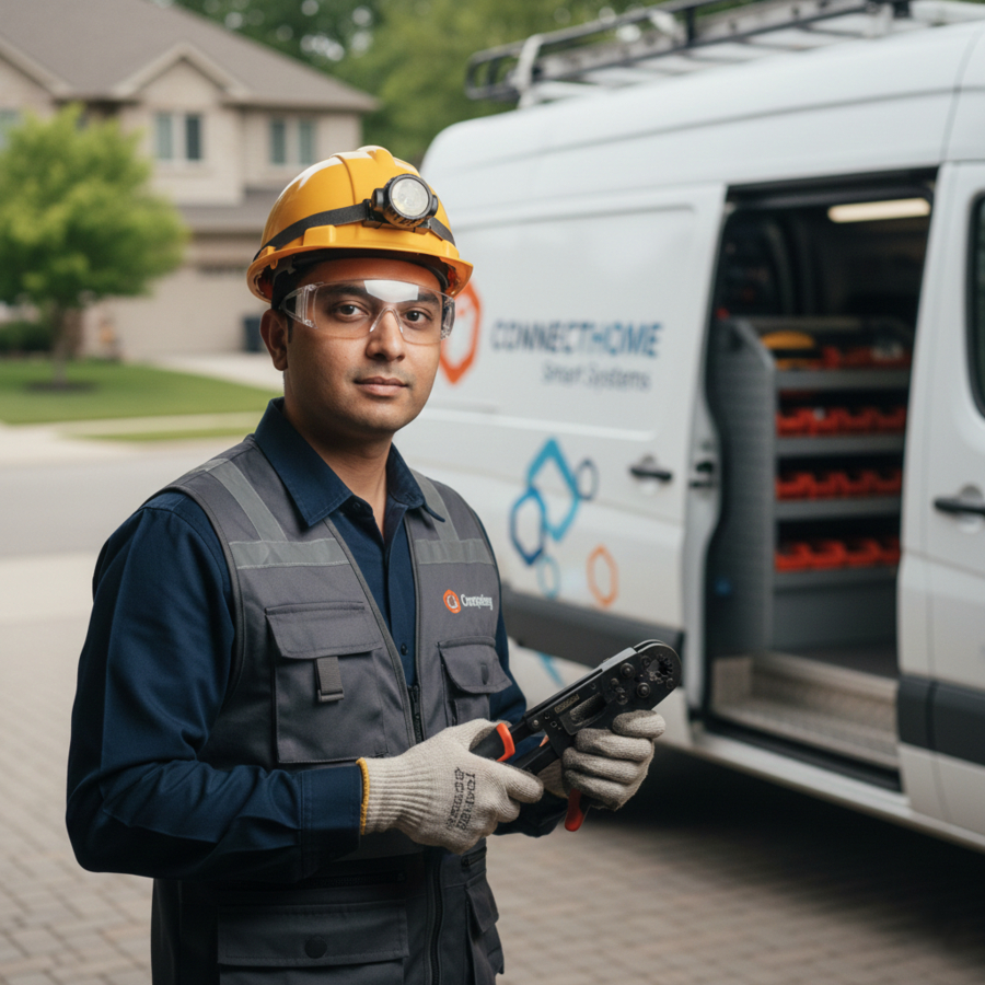 - Device Integration: Installing smart locks, cameras, sensors, and central hubs with precision.