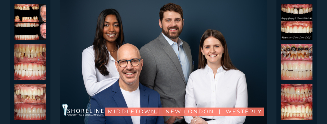 At Shoreline Periodontics, we specialize in advanced periodontal and dental implant care delivered with precision, compassion, and collaboration. Our expert team—Dr. Gregory Toback, Dr. Daniel Rolotti, Dr. Lavanya Rajendran, and Dr. Ellen Pearce—offers customized treatment solutions designed to restore oral health and confidence. Whether you're seeking full arch rehabilitation, dental implants, or gum disease treatment, our doctors work closely with patients and their general dentists to achieve optimal outcomes. With locations in Middletown CT, New London CT, and Westerly RI, Shoreline Periodontics is proud to provide exceptional specialty care throughout Connecticut and Rhode Island.