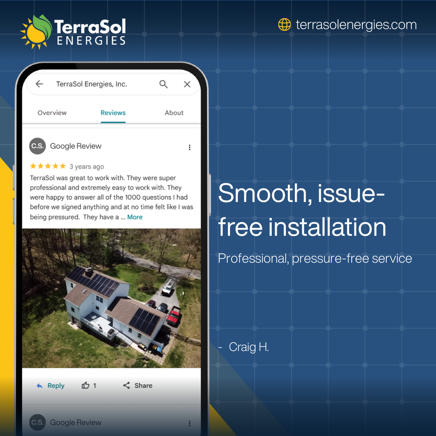 TerraSol Energies, Inc., located at 64 Watkin Ave, Chadds Ford, can be reached at 888-873-9995 or online at terrasolenergies.com.