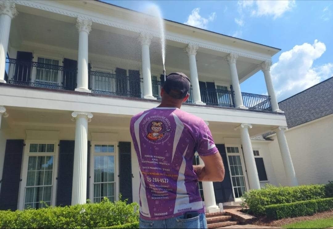 Tiger Pressure Wash provides professional pressure washing and soft washing services throughout Baton Rouge, Walker, Denham Springs, Prairieville, Zachary, and surrounding Louisiana areas. Since 2012, we’ve delivered dependable exterior cleaning for homes and businesses, including house washing, roof cleaning, concrete and driveway cleaning, building washing, gutter brightening, and commercial maintenance. We use safe soft-wash methods to remove mold, algae, mildew, and stains without damage. Fully insured and locally owned, we offer fast, affordable, and professional results you can trust. Call today for a free estimate.