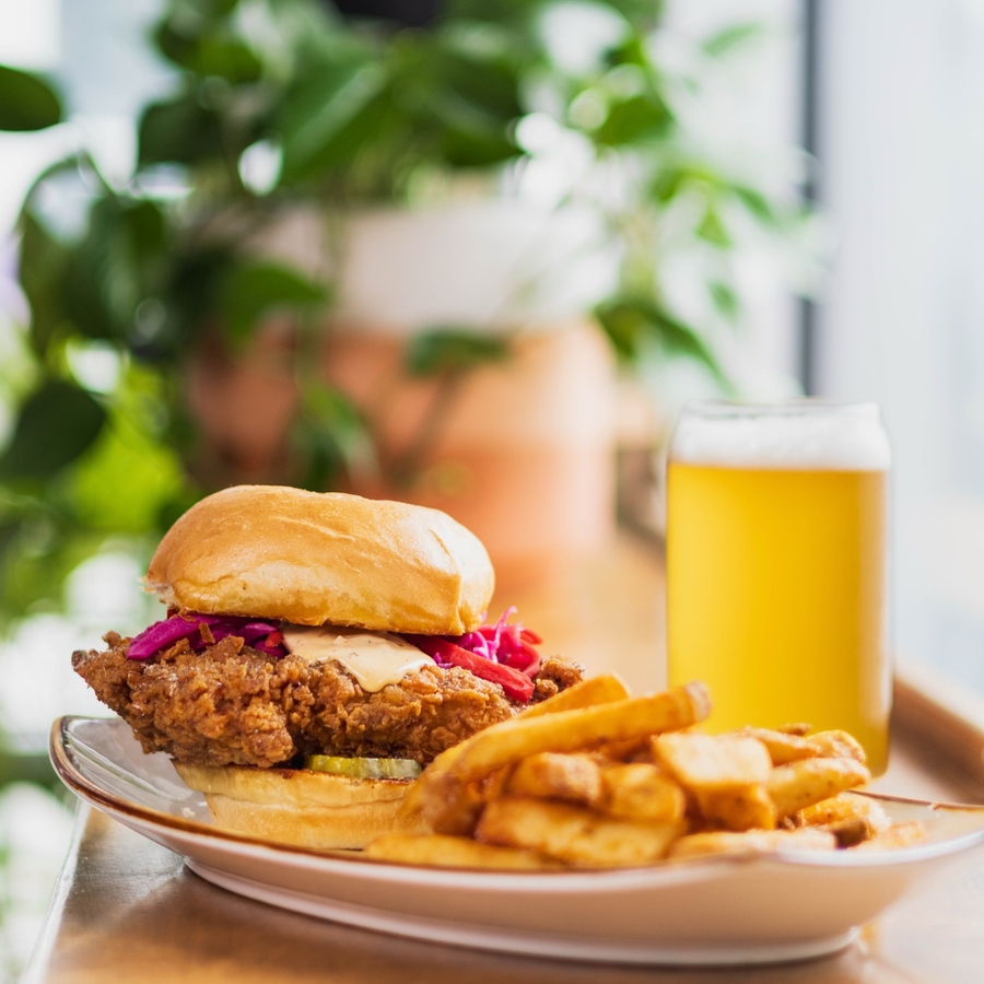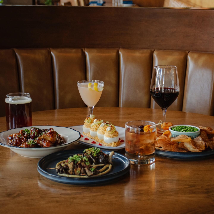 Modern comfort fare, craft cocktails and coffee shop served in an airy, midcentury space with a main dining room, bar, lounge/study, semi-private dining area, expansive front porch and backyard patio.